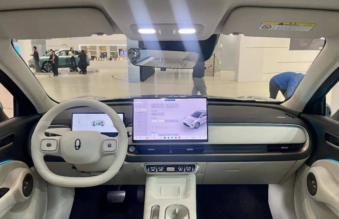 進入車內,歐拉5同樣沿用了活潑、簡約的家族式設計風格。15.6英寸懸浮式中控屏符合當下主流水準,亦是全車交互中心,10.25英寸全液晶儀表屏與雙輻式多功能方向盤醒目、好用。此外,儀表臺的環形亮色飾條自帶高級感,電子懷擋則為前排留出了更多儲物空間。
