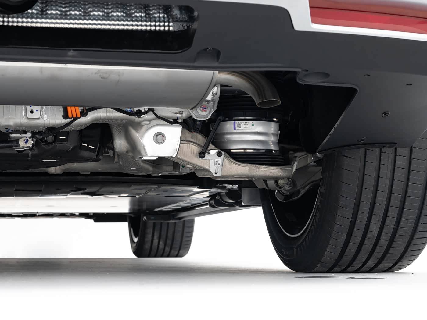 極氪9X采用了前雙橫臂獨立懸架加后多連桿獨立懸架的組合,并配備了閉式雙腔空氣懸架和48V主動穩定桿。極氪將其底盤系統稱為“浩瀚AI數字底盤”,宣稱能自動識別7種地形并匹配相應駕駛模式。