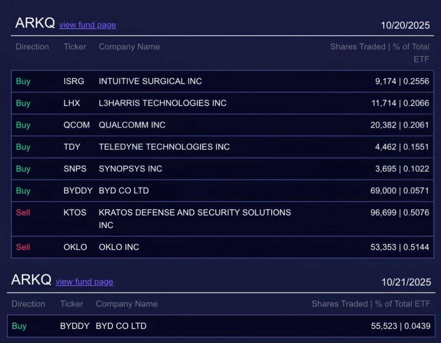 除國際投行外,以凱茜·伍德(女版巴菲特)旗下方舟投資為代表的長線資金,也在加速布局比亞迪。方舟投資在10月20日通過旗下ARKQ基金買入69000股比亞迪,10月21日再度增持55523股,這一連串的動作,充分表明了該資本對比亞迪前景的看好。