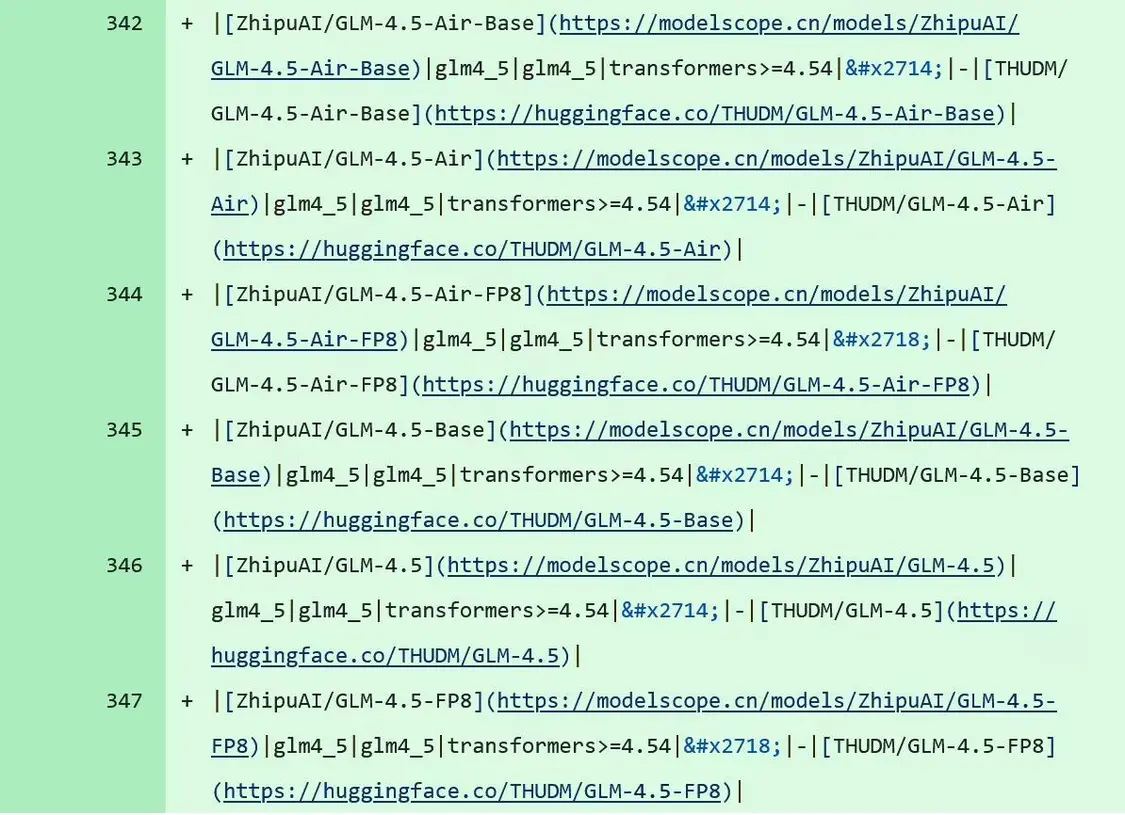 根據(jù) commit 上顯示的代碼,GLM-4.5 系列模型預(yù)估會(huì)有 GLM-4.5(355B-A32B)和 GLM-4.5-Air(106B-A12B)兩款模型。