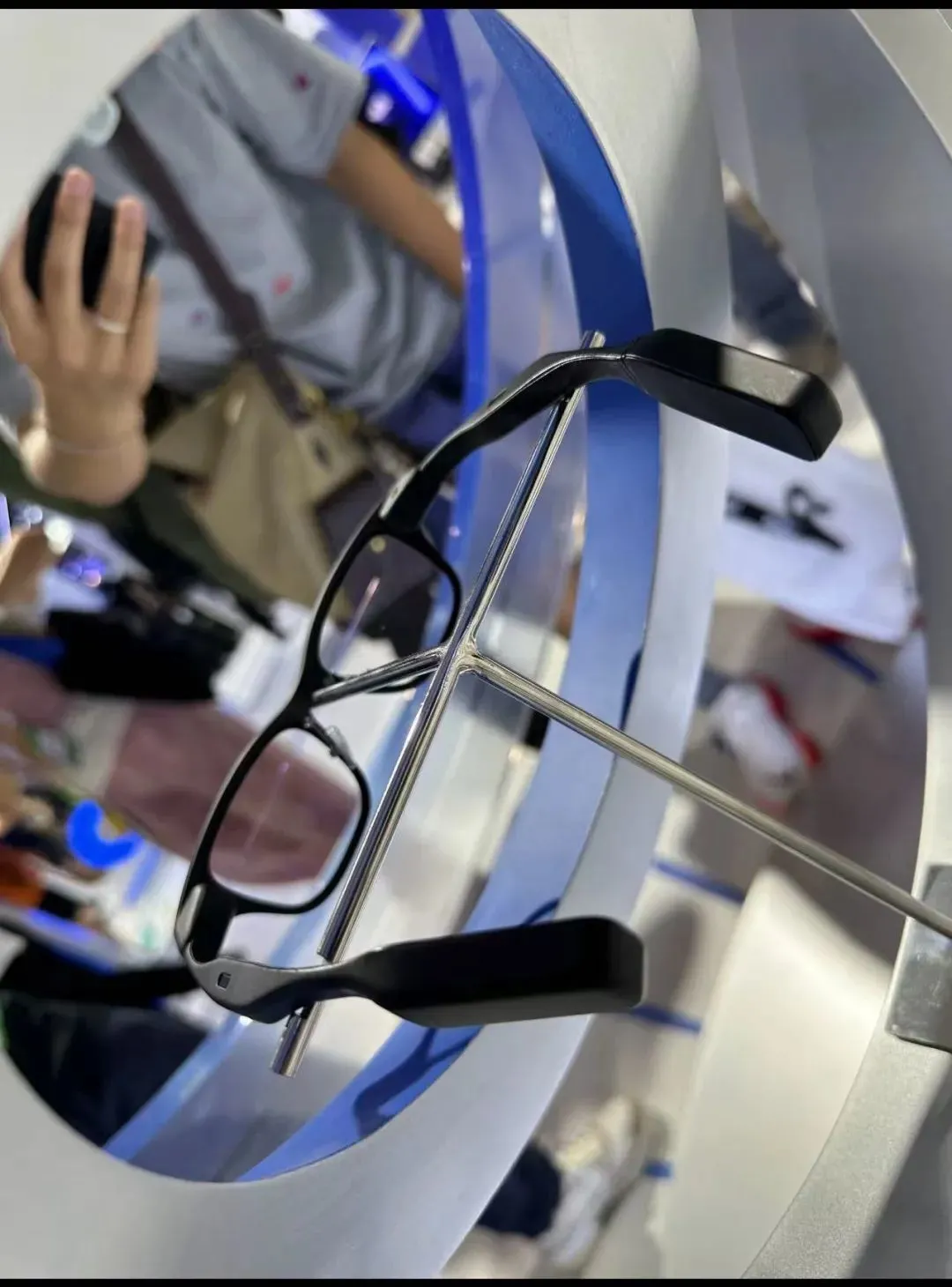 雖然產品無法實機體驗,但基于WAIC的熱度,以及目前展位上的產品外觀展示,這款AI眼鏡在業內還是引發了不小的關注度。在一些業內人士看來,一方面,阿里AI眼鏡可插拔電池的設計,為解決AI眼鏡續航提供了一個新思路;但整體設計觀感上卻有點“不太平衡”。