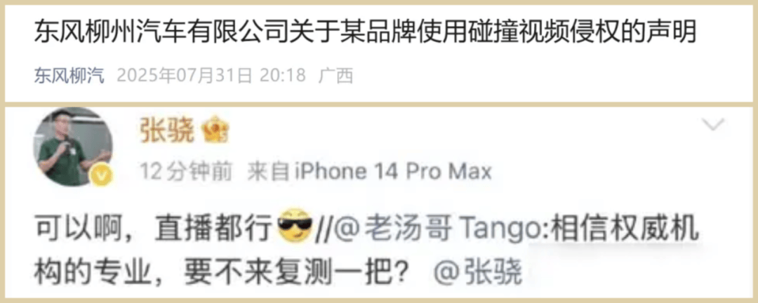 隨后,產品負責人公開喊話:“相信中國汽研,要不再撞一次?” 并直接點名“直播可行”。理想另一位高管張驍也附和:“可以啊,直播都行。” 姿態可謂直白。