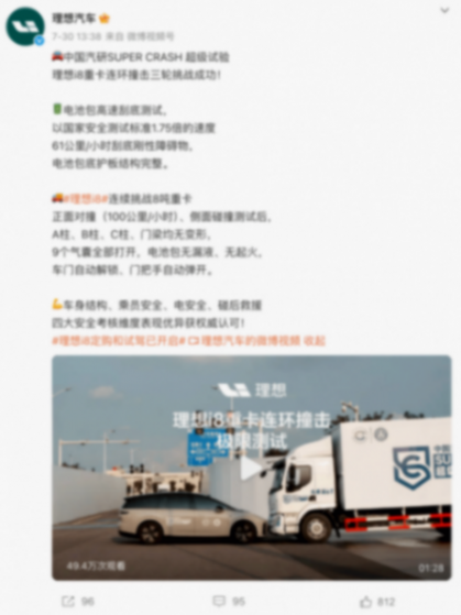 7月31日,東風柳汽升級回應,發布“視頻侵權”聲明,怒斥理想行為“超過商業競爭范疇”“誤導公眾知情權”,指責測試場景未說明條件、未說明車況,屬于“自定義碰撞條件”。