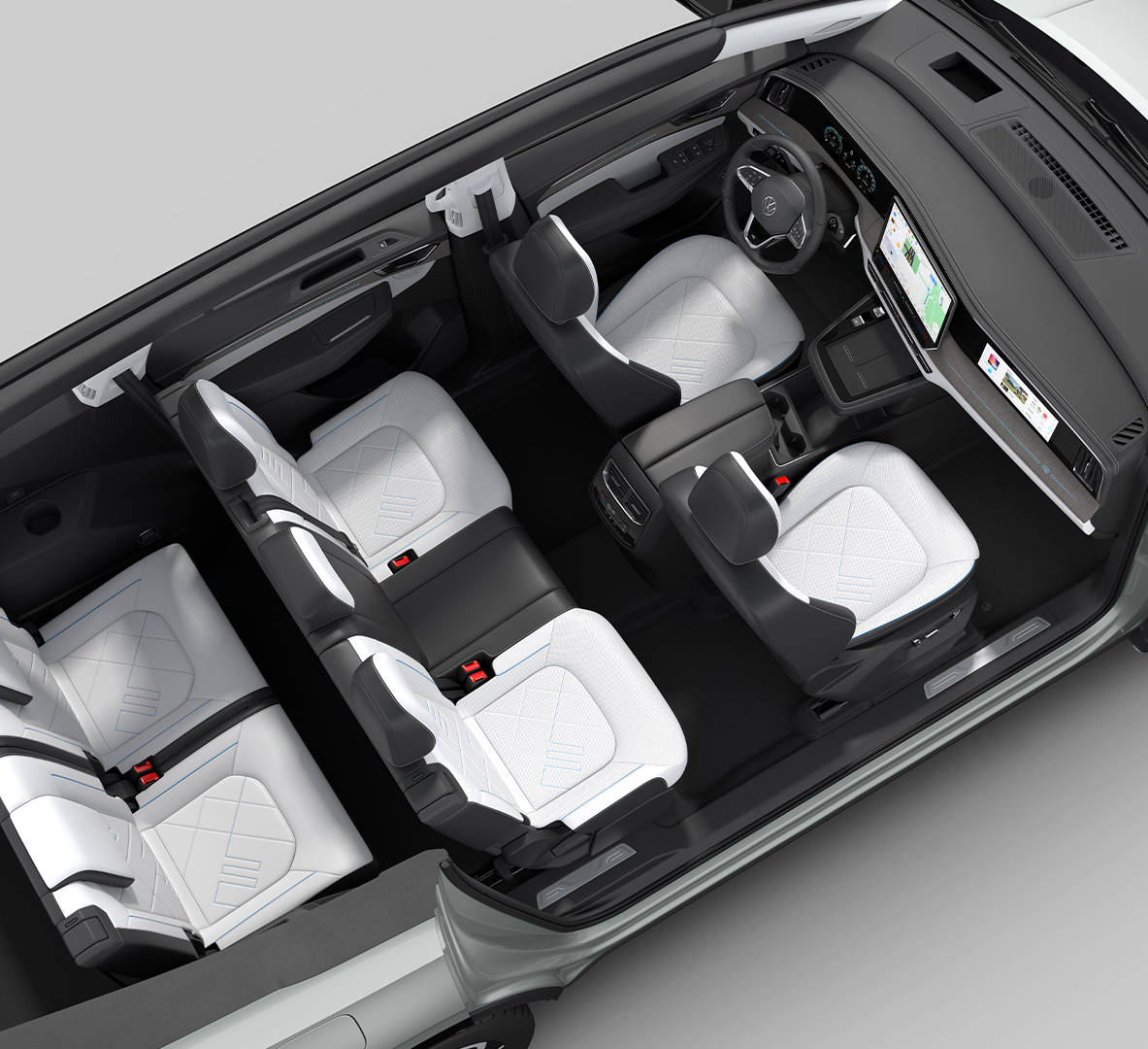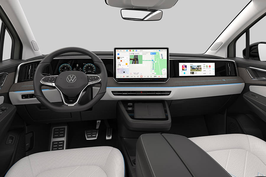 新車內飾采用環抱式設計,大眾家族最新的設計風格,主駕、中控、副駕三屏組成,并輔助抬頭顯示系統,懸浮式中控屏的尺寸更大,車機采用高通驍龍8155芯片,車機系統、導航、娛樂、語音全面升級。中控臺下方增加無線充電面板,改用懷擋。同時,新車采用6座/7座布局,后備廂空間350L。