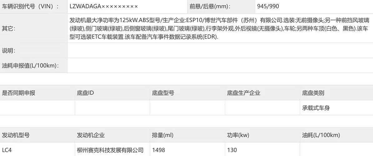 最后是動力,從申報信息來看,五菱星光560的燃油版是搭載五菱全新動力總成的核心成員,LC4系列1.5T發(fā)動機,其最大功率為130kW。