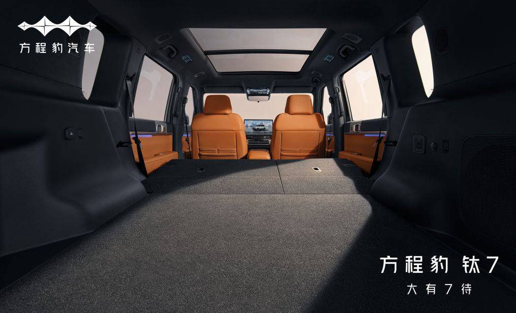 7月25日,比亞迪旗下個性化品牌方程豹汽車,正式官宣當前備受矚目的鈦7車內空間內飾圖,圖片從后備箱視角拍攝,具有目前市場上最流行的兩款內飾配色,都市橙和時尚灰,近乎純平和超大容積的后排空間將實用性拉滿,也讓消費者對這款車的期待值拉滿。